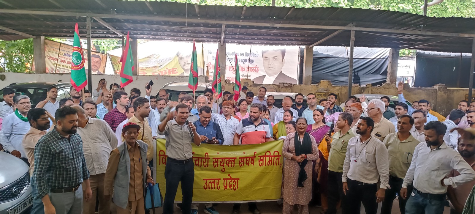 लखनऊ। नेशनल कोऑर्डिनेशन कमेटी ऑफ इलेक्ट्रिसिटी इंप्लाइज एंड इंजीनियर्स के आह्वान पर आज देश के सभी प्रांतों के बिजली कर्मचारियों ,जूनियर इंजीनियरों और अभियंताओ ने उत्तर प्रदेश में दो विद्युत वितरण निगमों के अंतर्गत आने वाले 42 जनपदों के किये जा रहे बिजली के निजीकरण के विरोध में प्रदर्शन किया। नेशनल कोऑर्डिनेशन कमेटी ऑफ़ इलेक्ट्रिसिटी इंप्लाइज एंड इंजीनियर्स के बैनर तले ऑल इंडिया पावर इंजीनियर्स फेडरेशन, ऑल इंडिया पावर डिप्लोमा इंजीनियर्स फेडरेशन, ऑल इंडिया फेडरेशन ऑफ़ इलेक्ट्रिसिटी इंप्लाइज, इलेक्ट्रिसिटी इंप्लाइज फेडरेशन ऑफ इंडिया, इंडियन नेशनल इलेक्ट्रिसिटी वर्कर्स फेडरेशन और ऑल इंडिया पावर मेन्स फेडरेशन ने 09 जुलाई को राष्ट्रव्यापी हड़ताल का आह्वान किया है।राजधानी लखनऊ में रेजिडेंसी पर हुए विरोध प्रदर्शन में भारी संख्या में संयुक्त किसान मोर्चा का बैनर लेकर किसान प्रदर्शन में सम्मिलित हुए। राजधानी लखनऊ में रेजिडेंसी और मध्यांचल मुख्यालय पर विरोध प्रदर्शन किया गया।